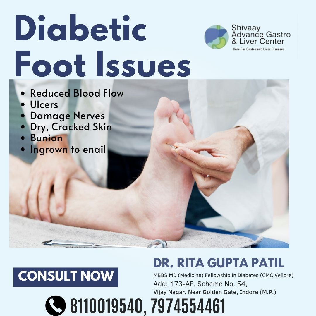 Dr. Rita Gupta Patil, practicing at Shivaay Centre for Diabetes, Thyroid & Obesity in Indore, is a highly trusted expert in diabetic foot care. With years of experience in diabetology and endocrinology, she offers comprehensive treatment for patients suffering from foot complications caused by diabetes. Her approach focuses on early diagnosis, effective blood sugar control, and prevention of infections and ulcers. Dr. Rita Gupta Patil provides advanced care, including wound management, neuropathy treatment, vascular assessment, and lifestyle guidance tailored to each patient's needs. Known for her compassionate care and attention to detail, she ensures patients receive the best support to avoid serious complications like gangrene or amputation. For reliable and complete diabetic foot treatment in Indore, Dr. Rita Gupta Patil is the ideal choice for quality and patient-centered care.