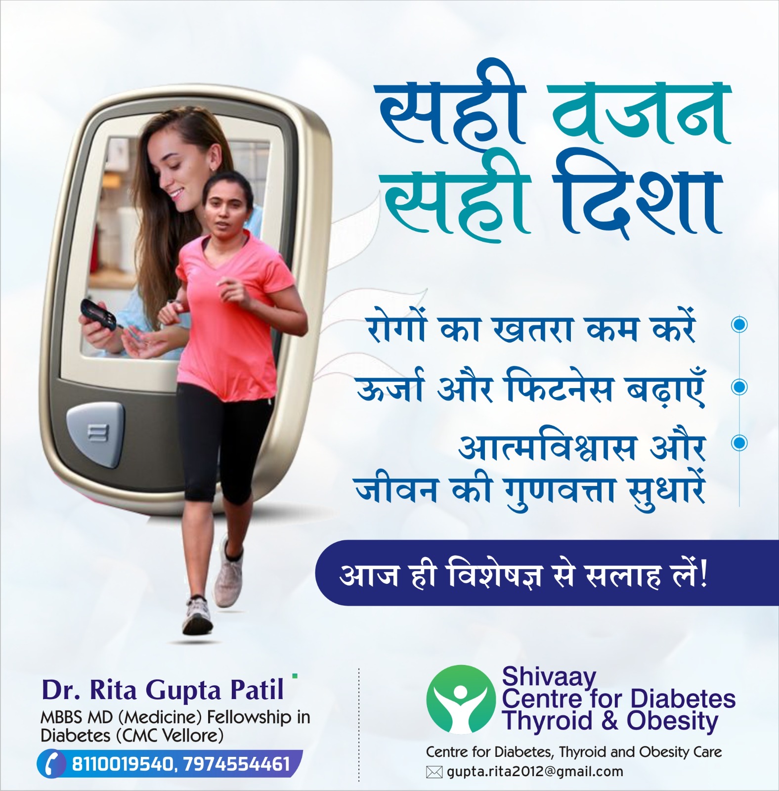 उनका दृष्टिकोण स्थायी और स्वस्थ वज़न घटाने को सुनिश्चित करने के लिए आहार योजना, जीवनशैली में बदलाव, व्यायाम मार्गदर्शन और चिकित्सा पर्यवेक्षण को जोड़ता है। शिवाय सेंटर में, मरीज़ों को व्यापक देखभाल मिलती है, जिसमें अंतर्निहित हार्मोनल असंतुलन, थायरॉइड की समस्याओं और वज़न को प्रभावित करने वाले मेटाबॉलिक विकारों का समाधान किया जाता है। डॉ. रीता गुप्ता पाटिल का दयालु मार्गदर्शन और प्रमाण-आधारित उपचार समग्र स्वास्थ्य को बेहतर बनाने, ऊर्जा बढ़ाने और जीवनशैली से जुड़ी बीमारियों के जोखिम को कम करने में मदद करते हैं।