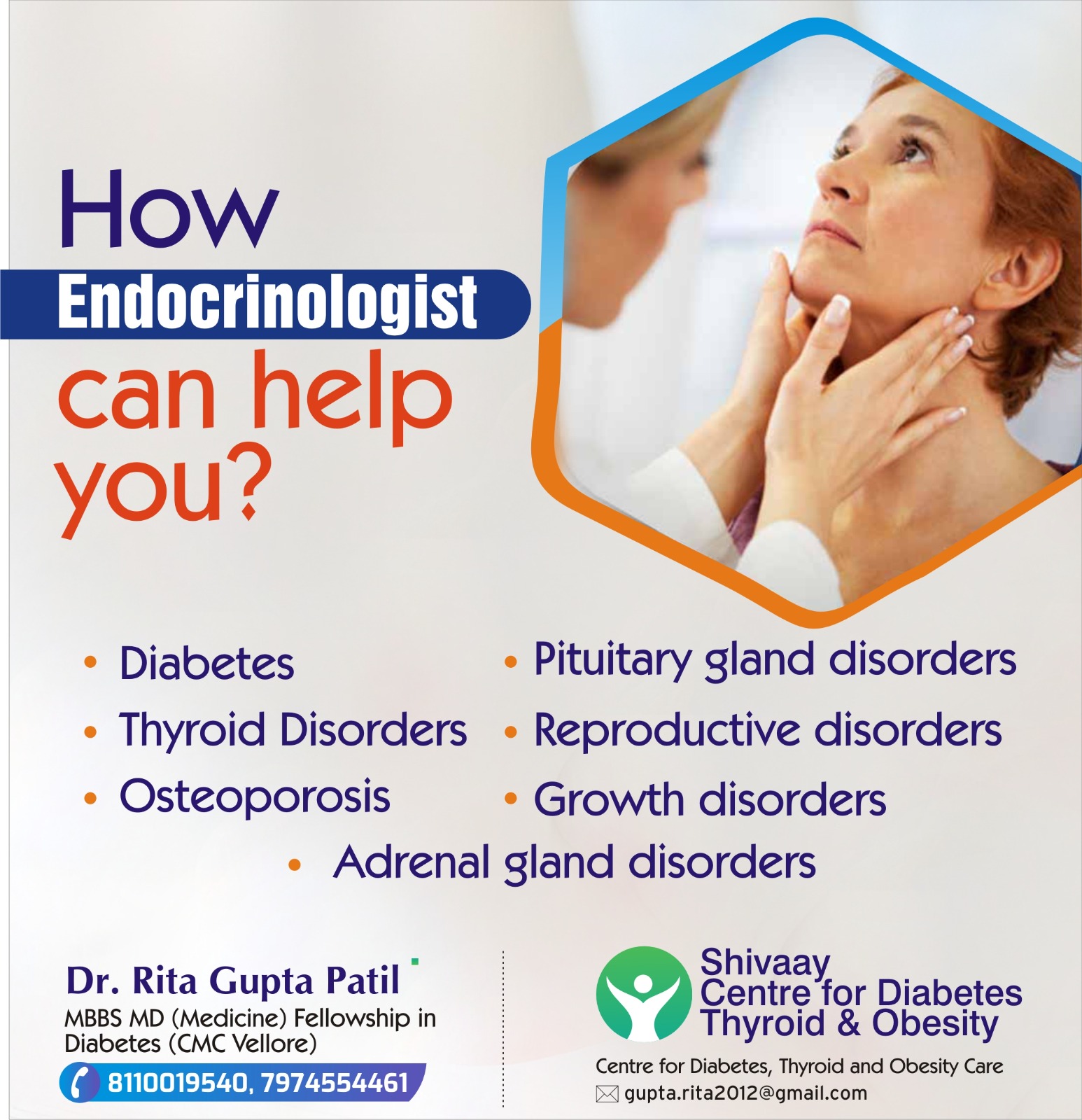 If you are searching for the best endocrinologist in Indore, Dr. Rita Gupta Patil at Shivaay Centre for Diabetes, Thyroid & Obesity provides expert care for all hormone-related disorders. With years of experience and a deep understanding of endocrine system diseases, she offers personalized treatment plans for diabetes, thyroid disorders, PCOD, obesity, osteoporosis, adrenal disorders, and other hormonal imbalances. Dr. Rita is known for her patient-friendly approach, accurate diagnosis, and evidence-based treatment.