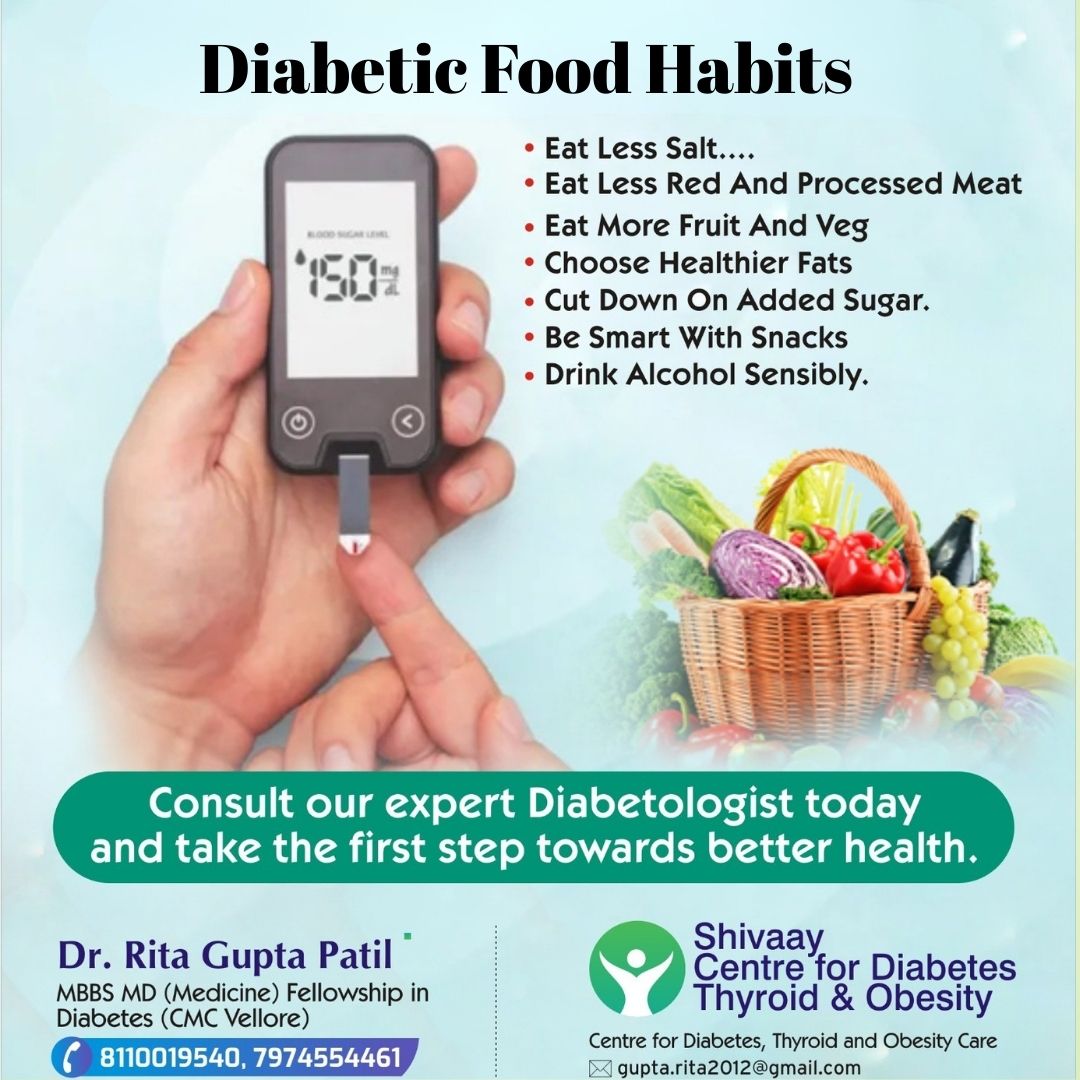 Dr. Rita Gupta Patil is recognized as one of the best diabetes specialists in Indore, known for her accurate diagnosis, compassionate care, and personalized treatment plans. At Shivaay Centre for Diabetes, Thyroid & Obesity, she offers comprehensive diabetes management, including sugar control, lifestyle guidance, and long-term health monitoring. Dr. Rita Gupta Patil emphasizes the importance of adopting healthy diabetic food habits, guiding patients on balanced meals, portion control, low-glycemic foods, and maintaining steady energy levels throughout the day.